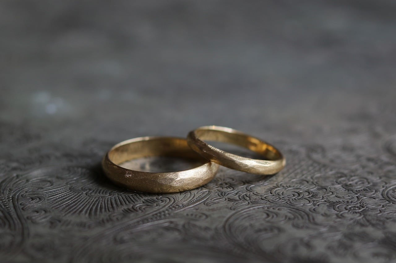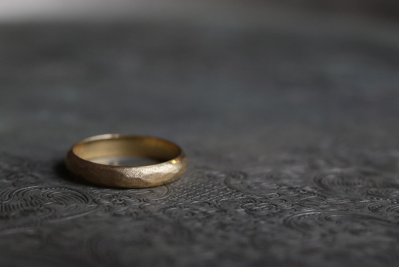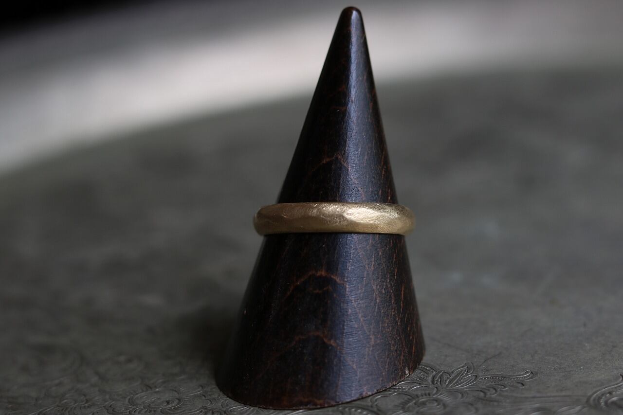 Fixed Ring mensは、アンティーク風なボコボコとしたデザインが特徴のK18イエローゴールドの結婚指輪です。古き良き時代の雰囲気を感じさせるユニークなルックスが、お二人の愛に深い意味を添えてくれることでしょう。