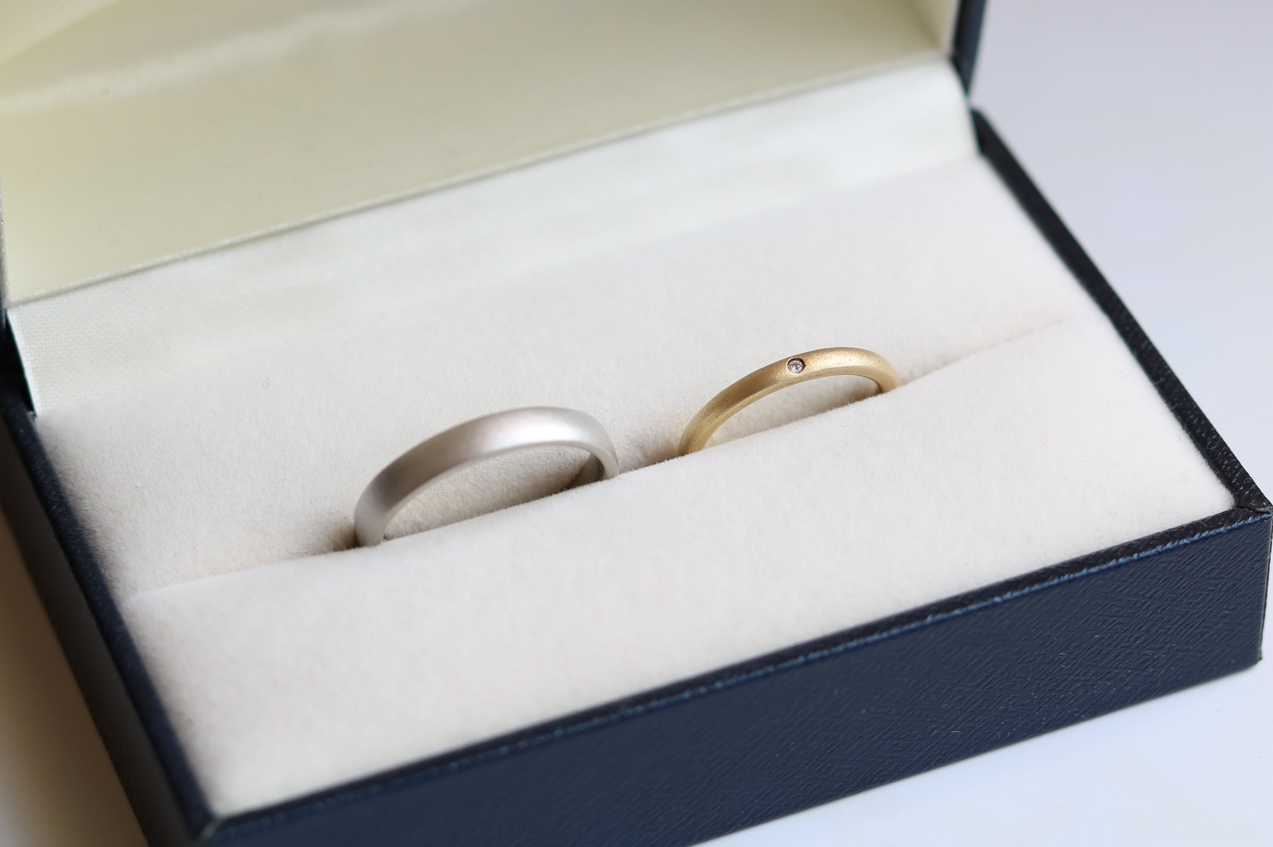 プラチナ素材の結婚指輪は、甲丸のフォルムとつや消し仕上げで、どんなスタイルにもマッチします。男性にも女性にも人気のあるアイテムで、永遠の愛と絆を象徴する一つとして最適です。
