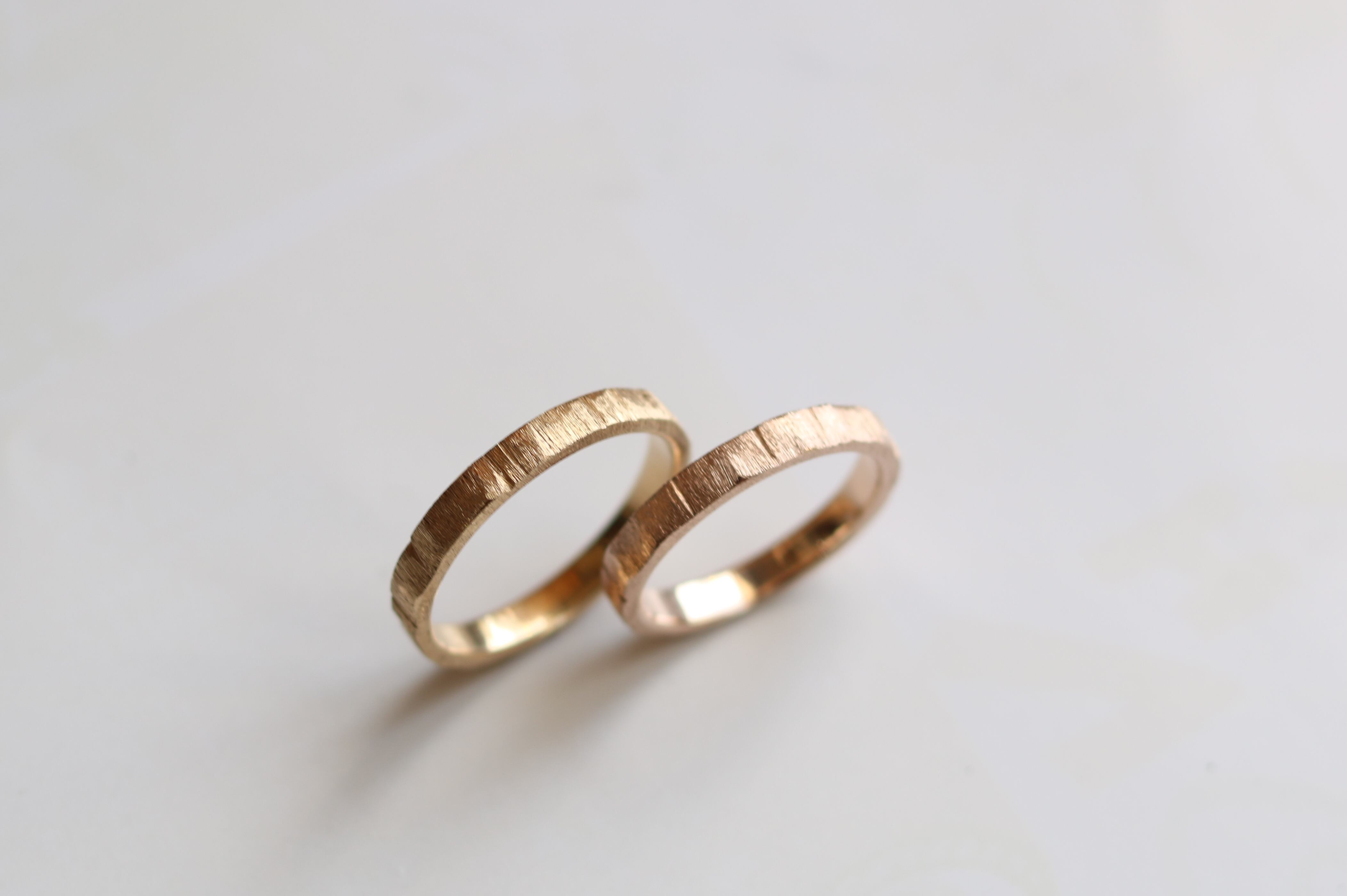 結婚指輪として、シンプルでありながら個性的なデザインが人気です。手元を引き立てる存在感と、肌になじむような柔らかな質感が魅力的です。