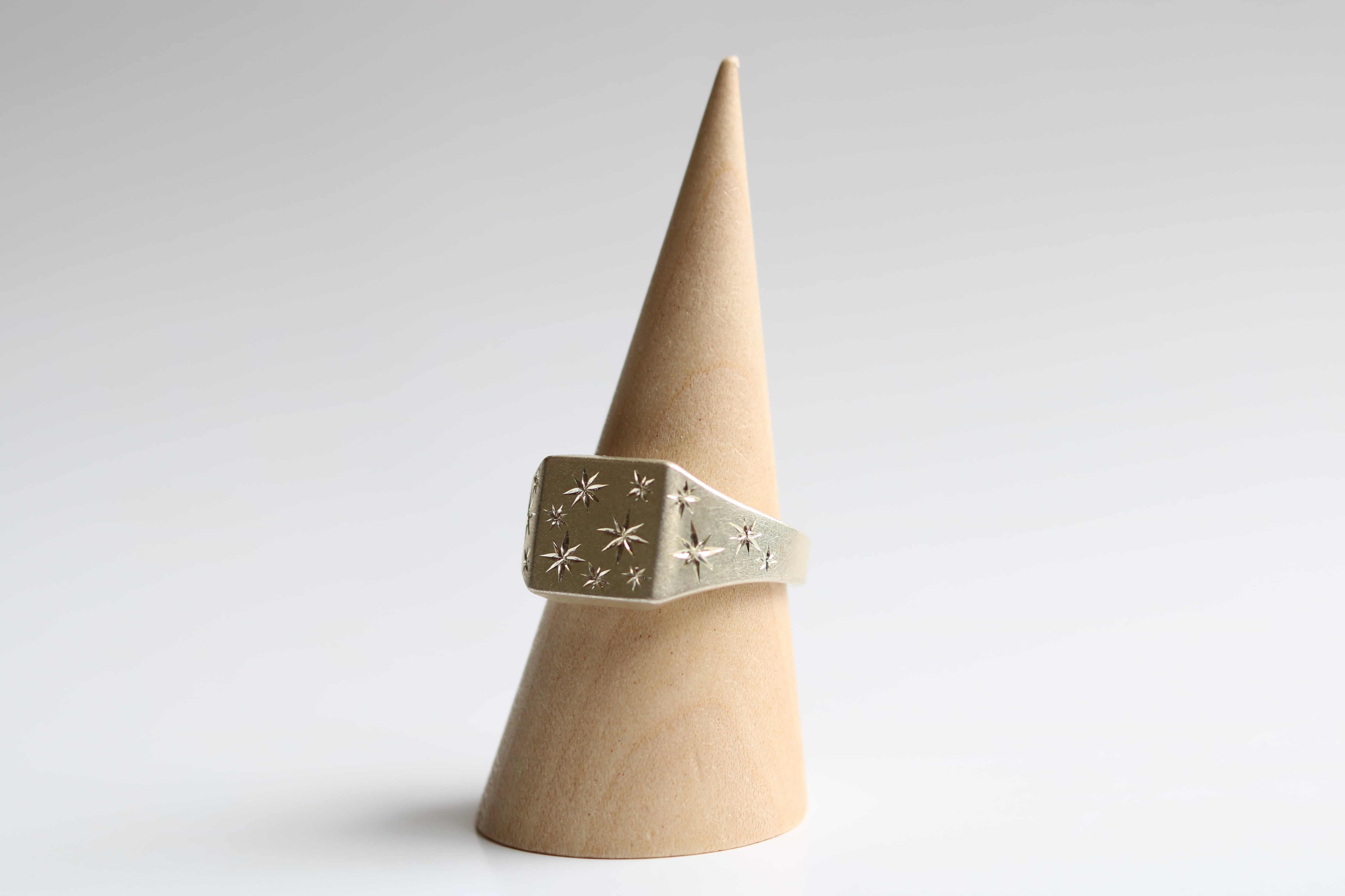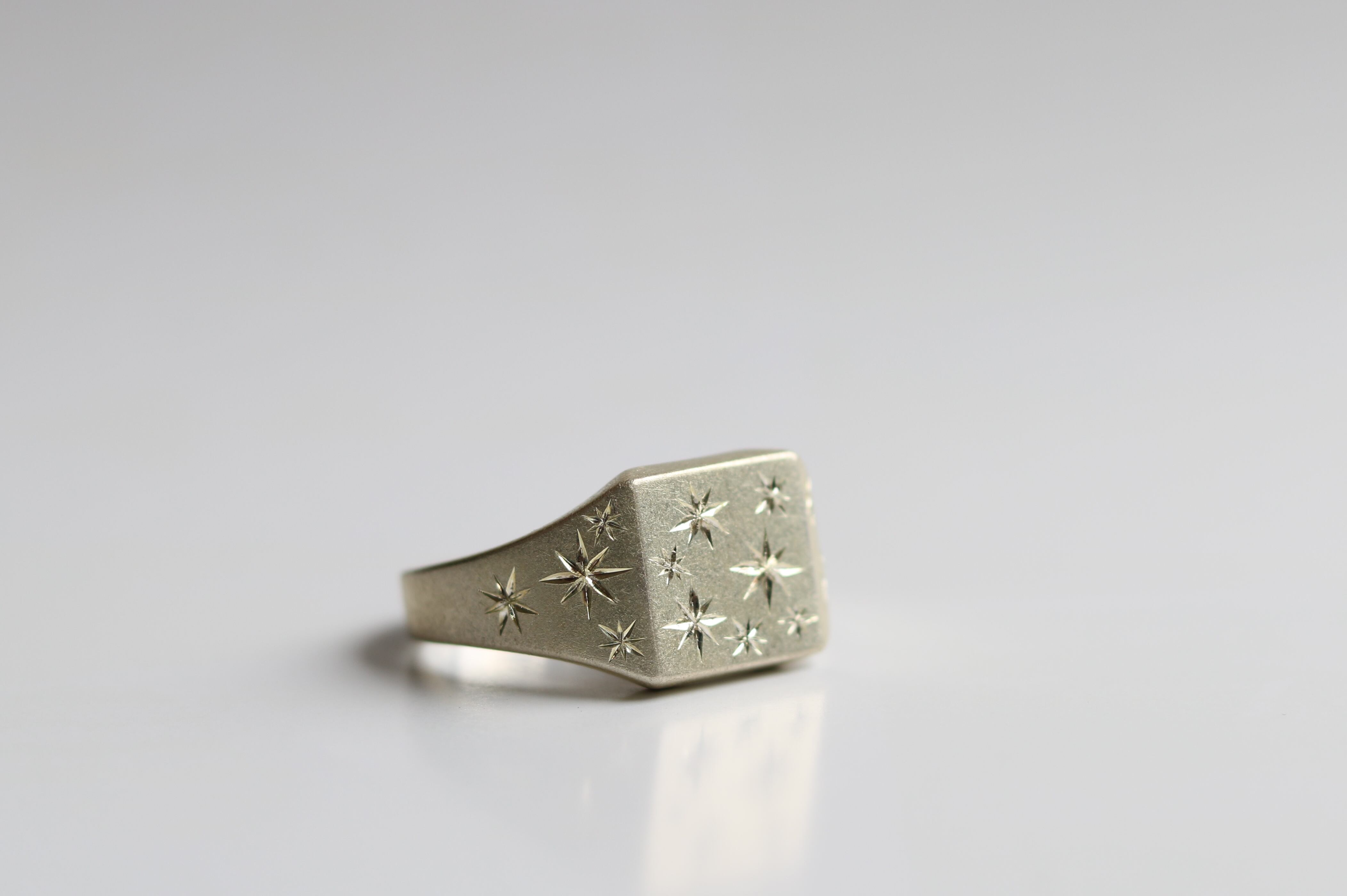 手彫りスターリングR-79は、職人の手によってひとつひとつ手作業で作られたシルバーリングです。シンプルでありながらも繊細な手彫りが施された印台は、上品な印象を与えます。プレゼントとしても最適です。