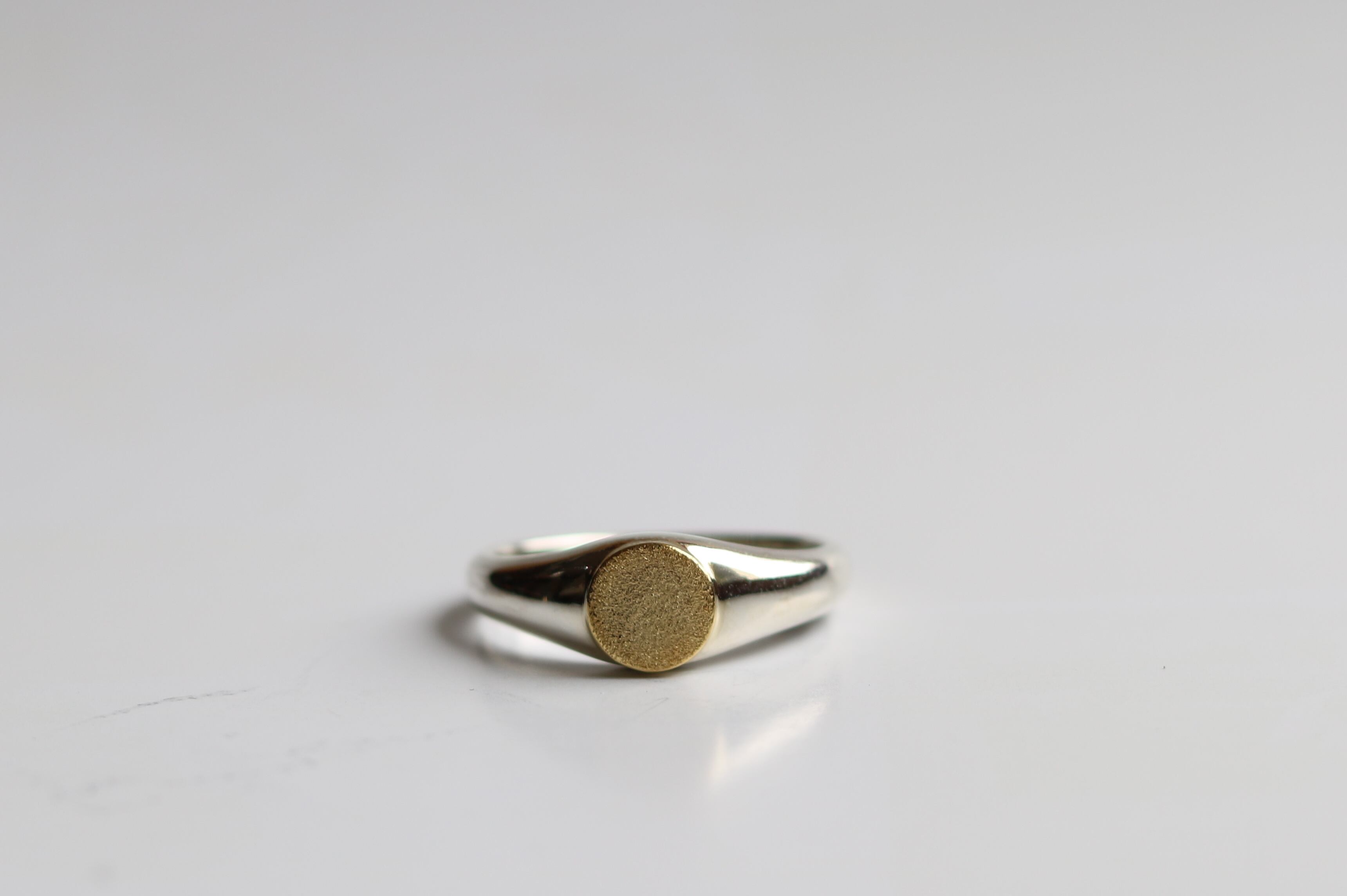 こちらのリングは、シンプルながらも存在感のある印台が特徴。シルバーと真鍮の組み合わせが、上品かつ個性的な印象を与えてくれます。指先をより魅力的に演出してくれること間違いありません。